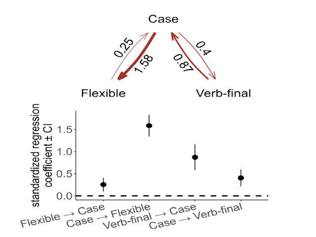 Languages vary in how they signal “who does what to whom”. Three main strategies to indicate the participant roles of “who” and “whom” are case, verbal indexing, and rigid word order. Languages that disambiguate these roles with case tend to have either verb-final or flexible word order. Most previous studies that found these patterns used limited language samples and overlooked the causal mechanisms that could jointly explain the association between all three features. Here we analyze grammatical data from a Grambank sample of 1705 languages with phylogenetic causal graph methods. Our results corroborate the claims that verb-final word order generally gives rise to case and, strikingly, establish that case tends to lead to the development of flexible word order. The combination of novel statistical methods and the Grambank database provides a model for the rigorous testing of causal claims about the factors that shape patterns of linguistic diversity.