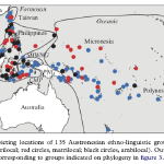 Gray RD, Drummond AJ, & Greenhill SJ. 2009. Language Phylogenies Reveal Expansion Pulses and Pauses in Pacific Settlement. Science, 323: 479-483.