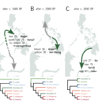 The Philippines are central to understanding the expansion of the Austronesian language family from its homeland in Taiwan. It remains unknown to what extent the distribution of Malayo-Polynesian languages has been shaped by back migrations and language leveling events following the initial Out-of-Taiwan expansion. Other aspects of language history, including the effect of language switching from non-Austronesian languages, also remain poorly understood. Here we apply Bayesian phylogenetic methods to a core-vocabulary dataset of Philippine languages. Our analysis strongly supports a sister …