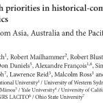 The first issue of Diachronica contained an evaluation of the comparative method as applied to “exotic” languages (Boretzky 1984). Thirty years later, it is worth taking stock of what our discipline has accomplished and identifying future priorities and pressing issues that have (re-)emerged. The following represents the considered judgement of several practitioners in language families from a large region of the world that is underrepresented in international fora. The ideas were first presented during the 20th International Conference on Historical Linguistics (ICHL 20), Osaka, Japan, 2011.